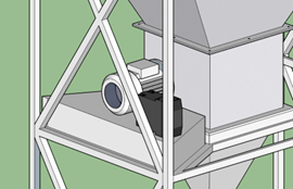 -Komponen utama: Motor listrik 3 fasa (5 HP), Inverter Mitsubishi F700 FR-F740, PLC Omron CP1E-E20SDR-A, Sensor arus ACS712 30A, Sensor getaran SW-420 -Material: Aluminium 304 (kontak langsung dengan pupuk), Besi rangka dan carbon steel, -Fitur teknis: Kontrol kecepatan dan arah motor via inverter, Emergency Stop sebagai standar keselamatan, Ketebalan minimum material: 6mm, Desain 3D dengan Autodesk Inventor