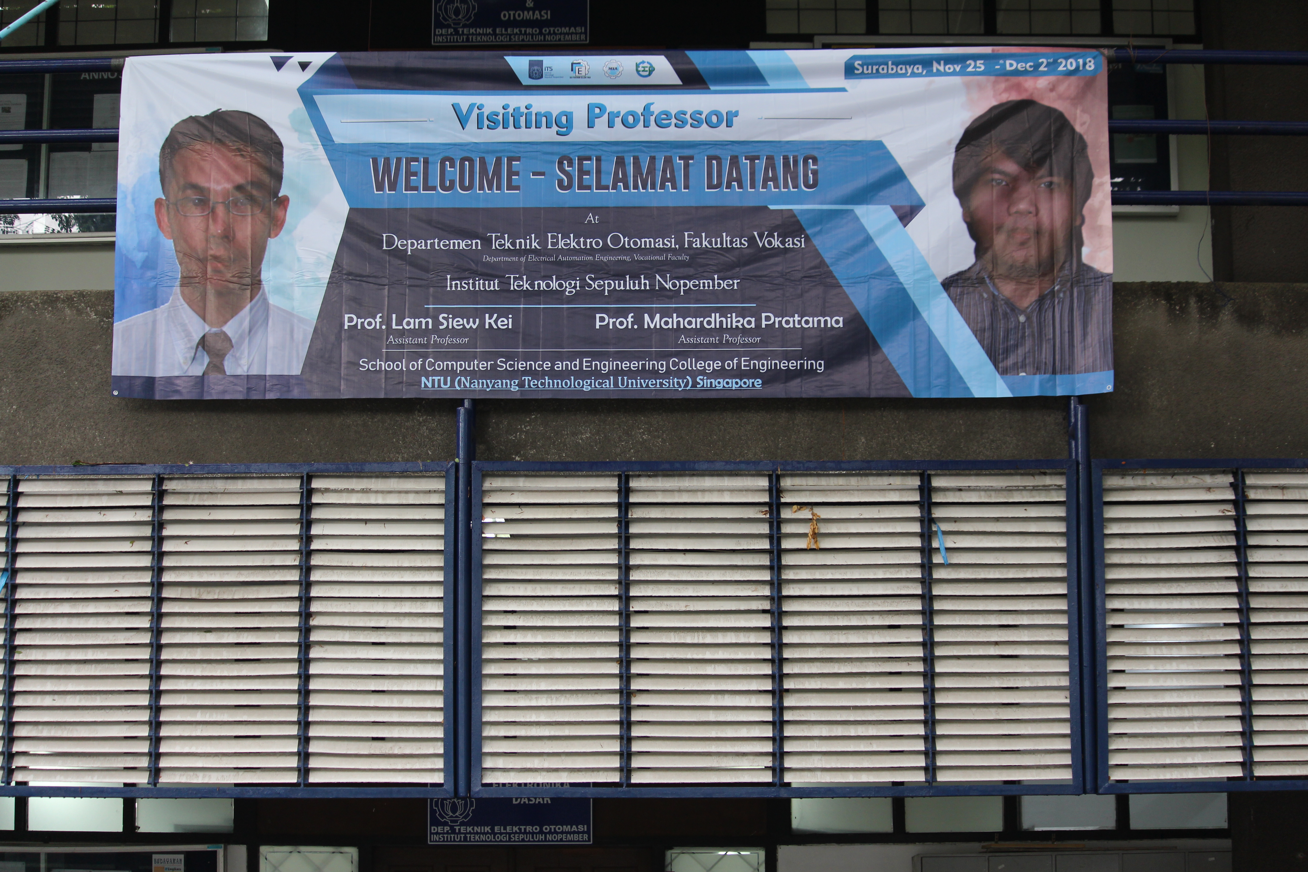 Pada Kesempatan kali ini Departemen Teknik Elektro Otomasi mendapat kunjungan 2 profesor dari NTU (Nanyang Technologycal University) Singapore Yaitu Prof. Mahardhika Pratama dan Prof. Lam Siew Kei pada tanggal 25 Nopember 2018 sampai dengan tanggal 2 Desember 2018.