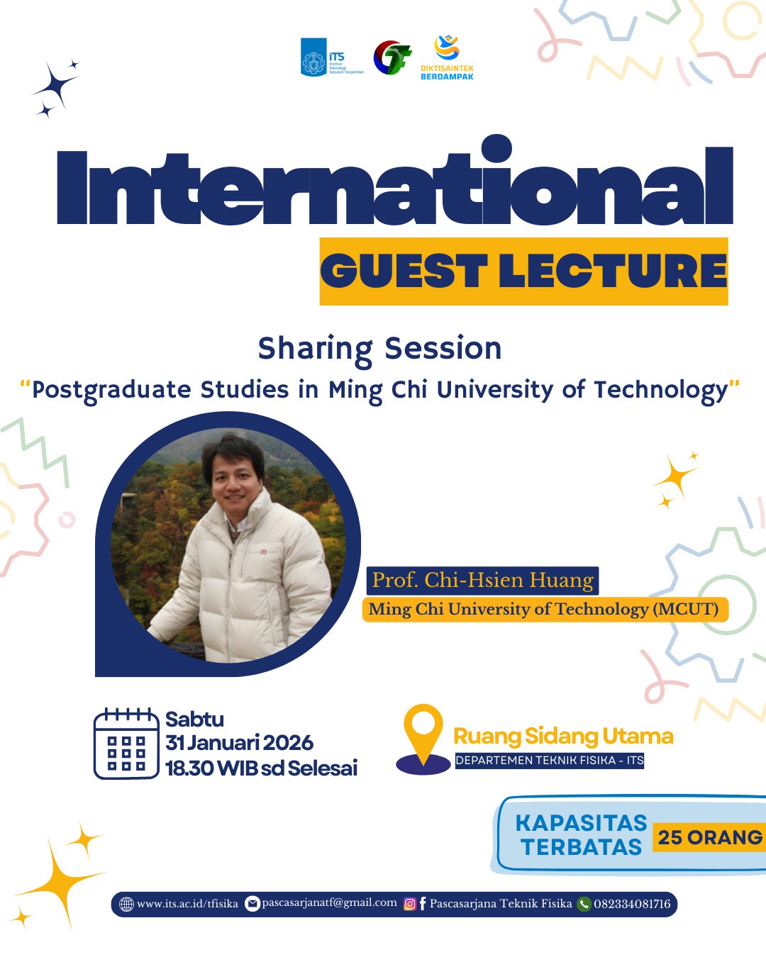 🎓 International Guest Lecture 🌏 Program Pascasarjana Teknik Fisika ITS mengundang sivitas akademika untuk mengikuti Sharing Session bertajuk:“Postgraduate Studies