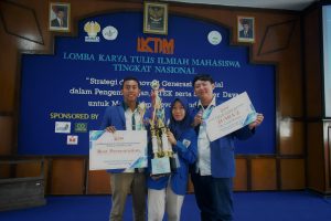 Gambar : (dari kiri ke kanan) Shodiq, Rizka, dan Theo merayakan kemenangan yang diperoleh dari LKTIM UNNES 2019