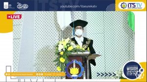 Sambutan Rektor ITS, Prof. Dr. Ir. Mochamad Ashari M.Eng. saat memberikan sambutan kepada para wisudawan ITS melalui platform online Zoom