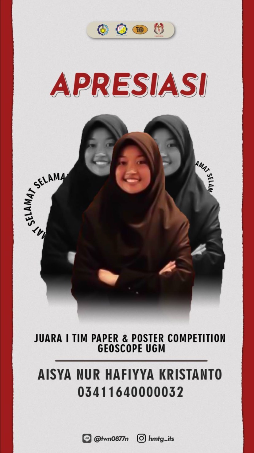 Aisya Nur Hafiyya Kristanto Mahasiswa Teknik Geofisika ITS – Juara 1 Geoscience Competition 2020 UGM-Paper and Poster Competition