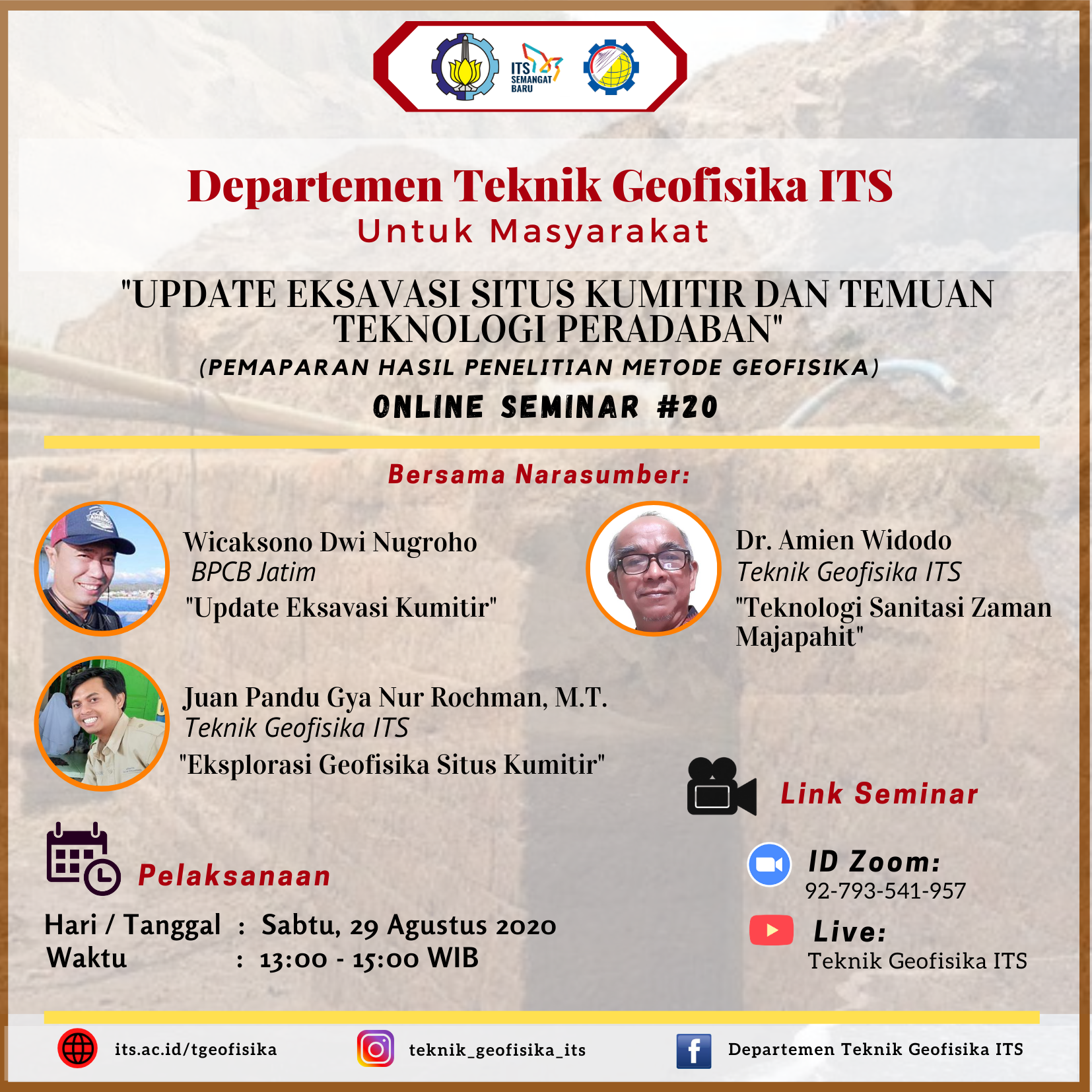 Departemen Teknik Geofisika ITS menyelenggarakan Seminar Online ke 20 bertajuk: Departemen Teknik Geofisika ITS Untuk Masyarakat: “Update Eksavasi Situs Kumitir Dan Temuan Teknologi Peradaban“.