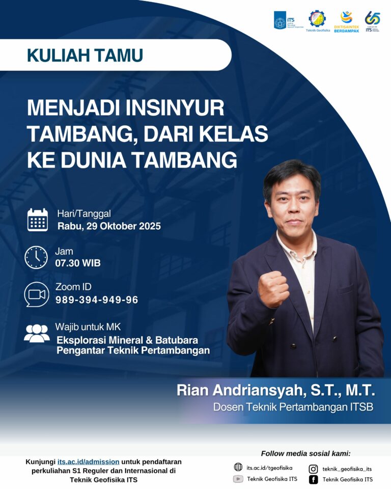 Departemen Teknik Geofisika ITS menyelenggarakan Kuliah Tamu “Kuliah Tamu “Menjadi Insinyur Tambang, Dari Kelas