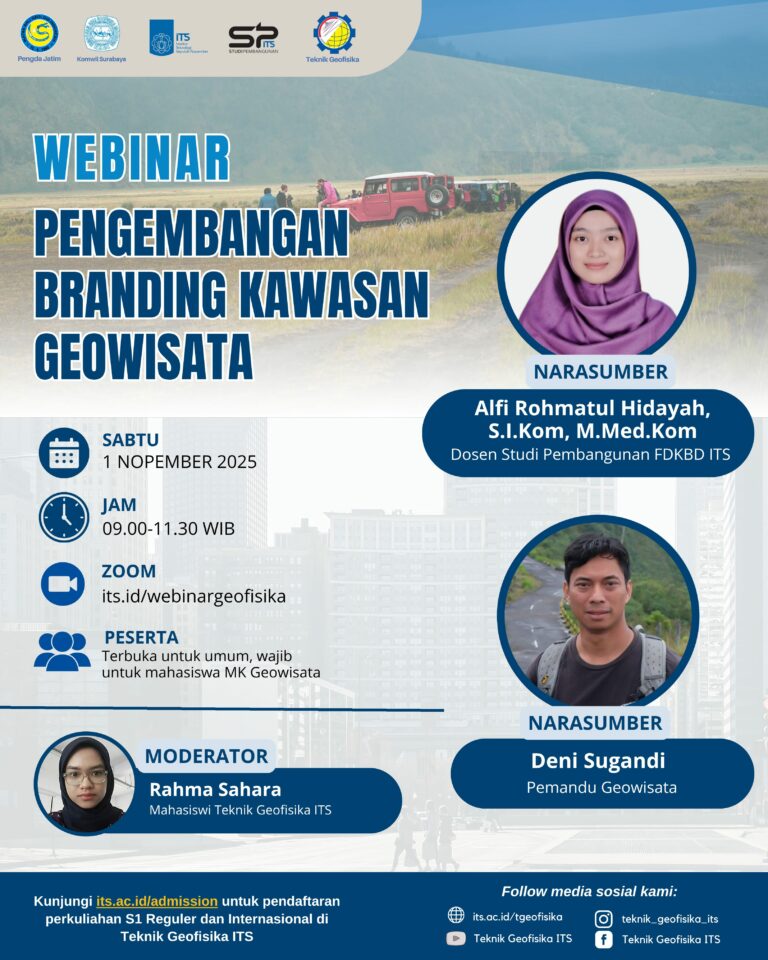 Departemen Teknik Geofisika ITS menyelenggarakan Webinar “PENGEMBANGAN BRANDING KAWASAN GEOWISATA” bersama: NARASUMBER Alfi Rohmatul