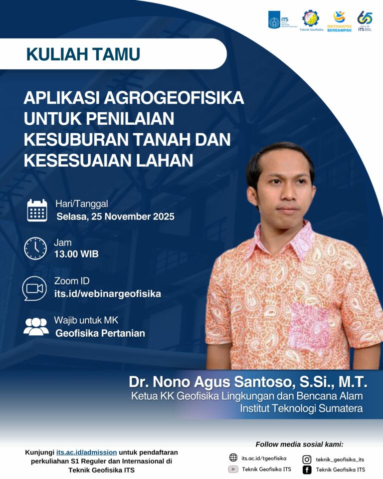 Departemen Teknik Geofisika ITS menyelenggarakan Kuliah Tamu: “APLIKASI AGROGEOFISIKA UNTUK PENILAIAN KESUBURAN TANAH DAN