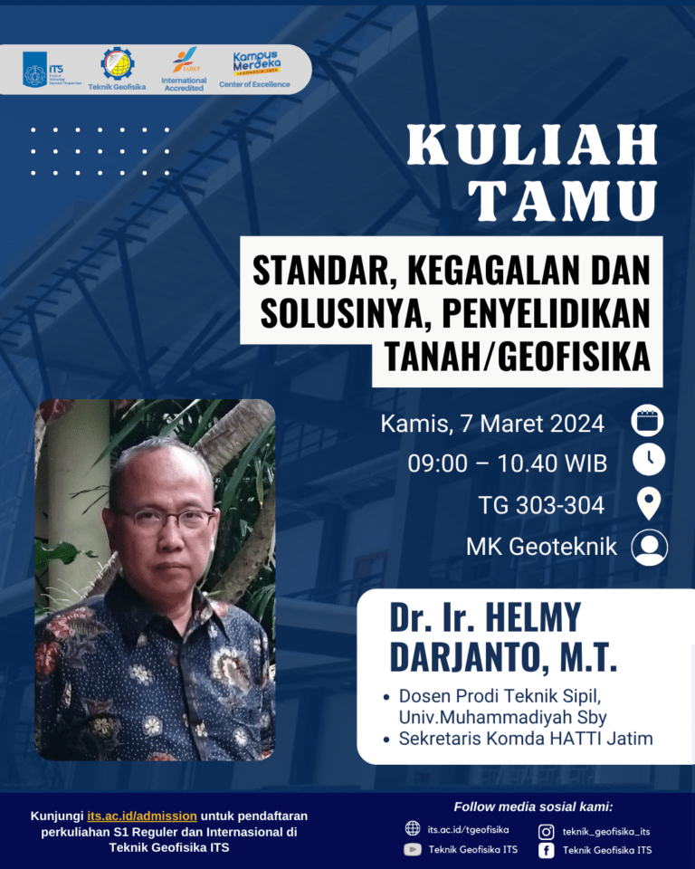 Departemen Teknik Geofisika ITS menyelenggarakan kuliah tamu : Judul “Standar, Kegagalan dan Solusinya, Penyelidikan