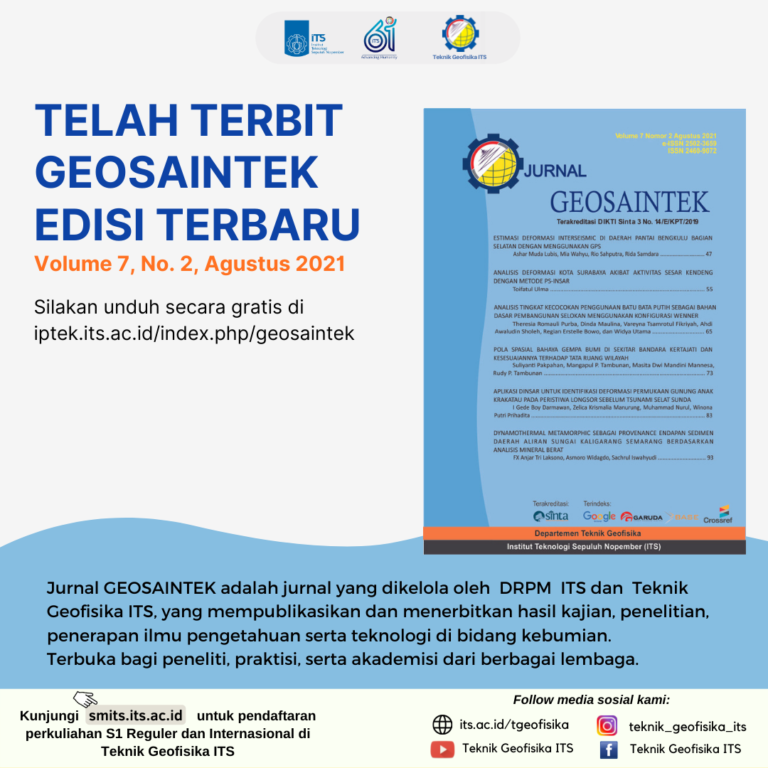 Jurnal Geosaintek has been published for the newest volume: Vol. 7, No.