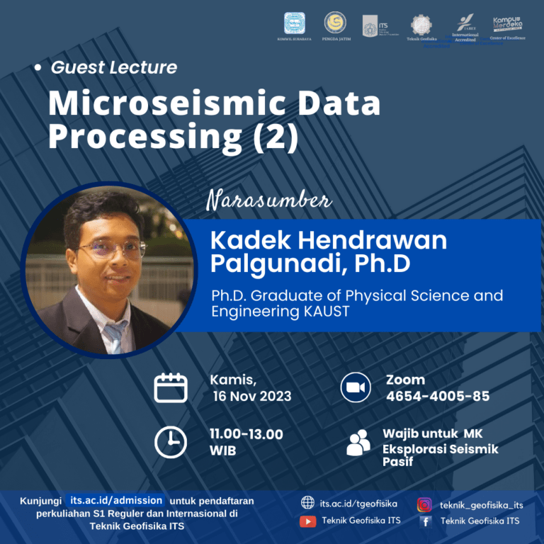 Teknik Geofisika ITS akan menyelenggarakan Kuliah Tamu dengan topik Quantitative Seismic Interpretation, bersama narasumber: