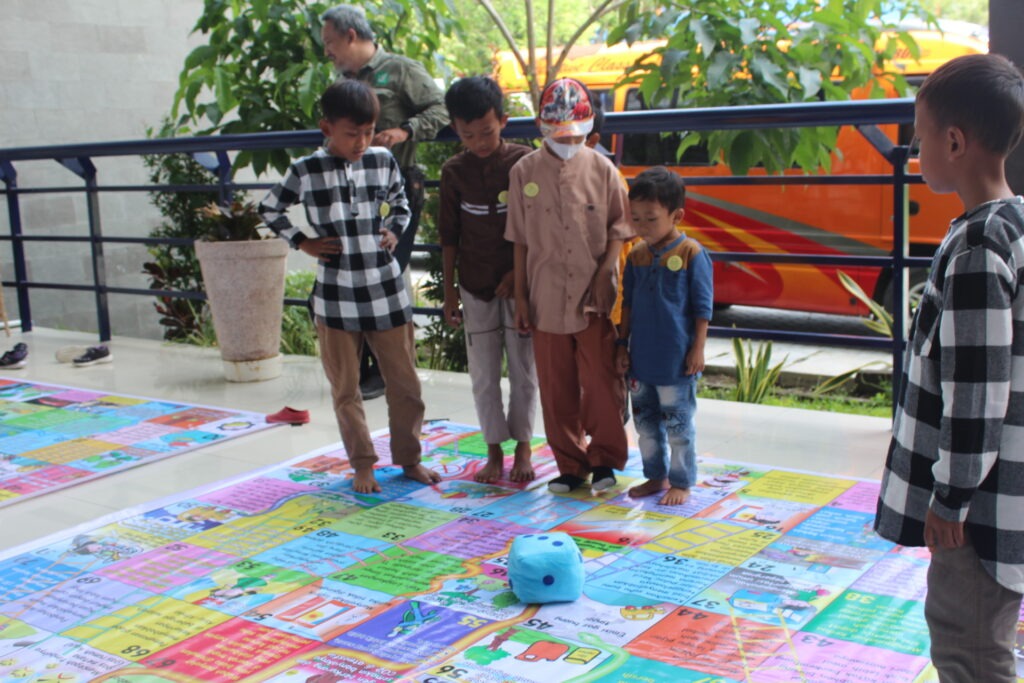 Students of An Najm Jombang Learning Center play climate change snakes and ladders game