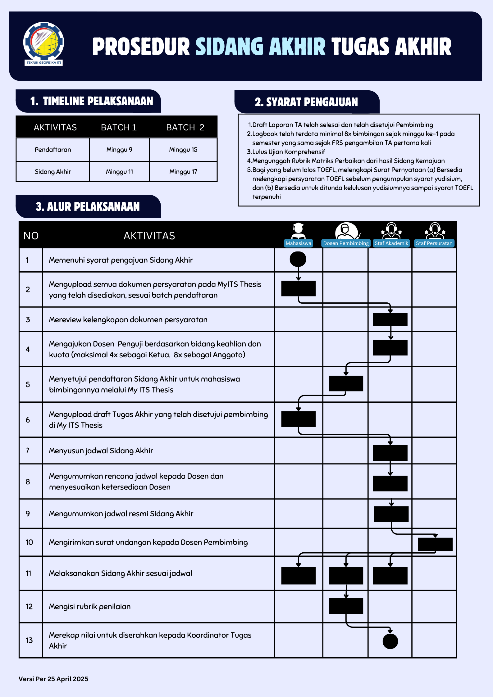 • Pelajari Peraturan Akademik ITS selengkapnya disini, dan Panduan Pembimbingan Akademik Teknik Geofisika disini