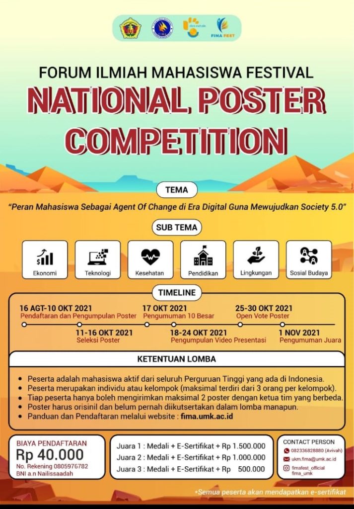 Simak syarat dan ketentuannya dalam poster berikut ini, dan daftarkan dirimu melalui website:  fima.umk.ac.id