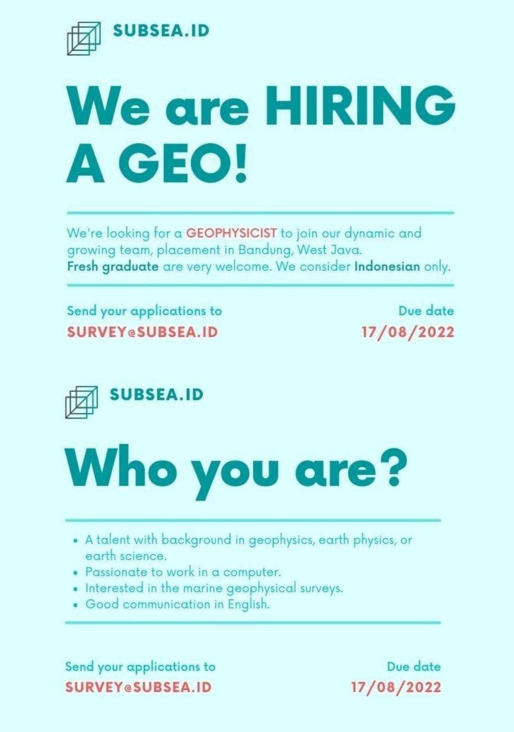 Simak informasi selengkapnya melalui poster di bawah ini dan segera kiirimkan lamaranmu ke survey@subsea.id sebelum 17 Agustus 2022.