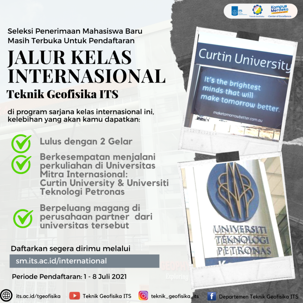 Buat kalian pejuang PTN, peluang untuk berkuliah di ITS masih terbuka lebar, terutama di Departemen Teknik Geofisika!