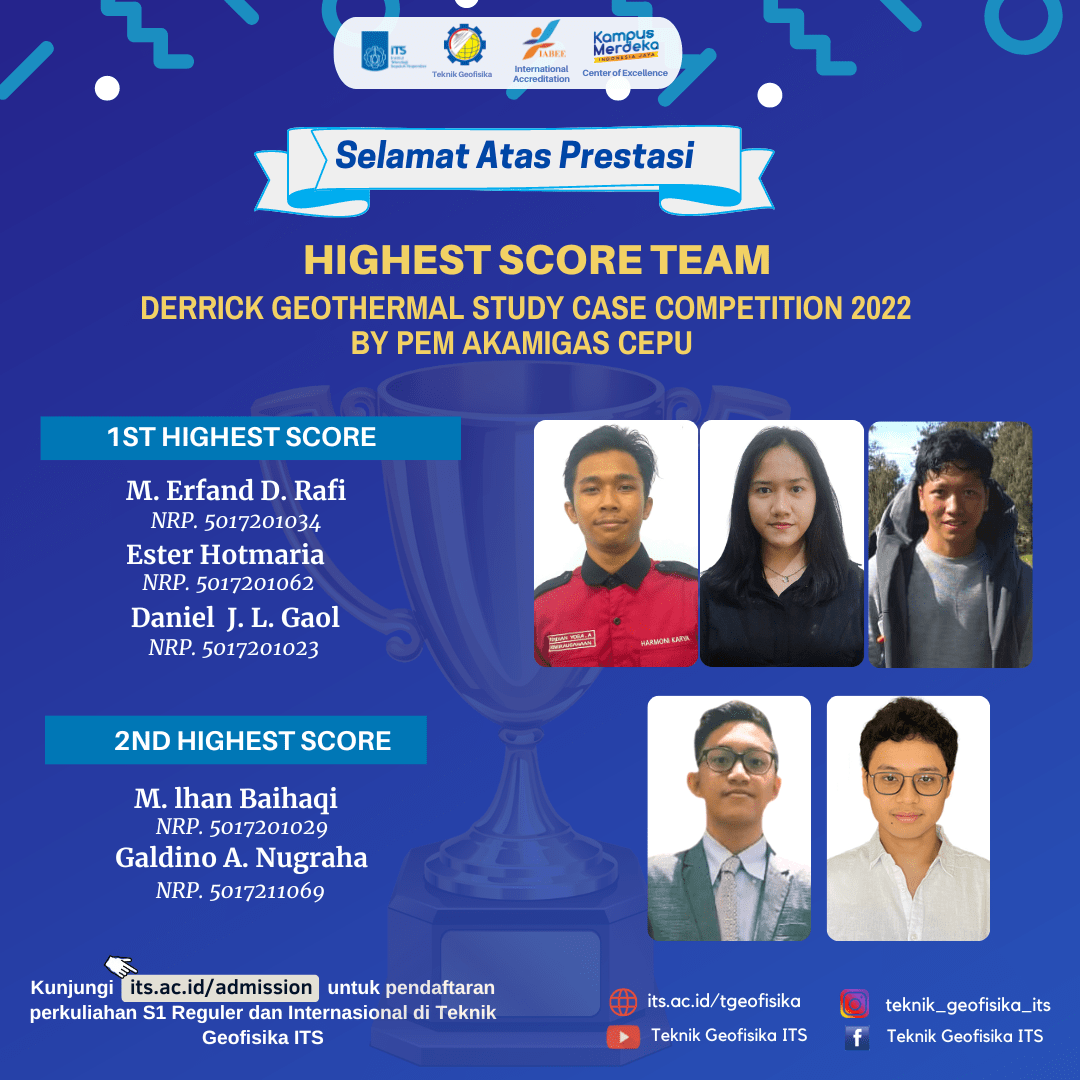 5 Mahasiswa Teknik Geofisika ITS berhasil menjuarai kompetisi internasional bertajuk DERRICK 2022. Mahasiswa yang