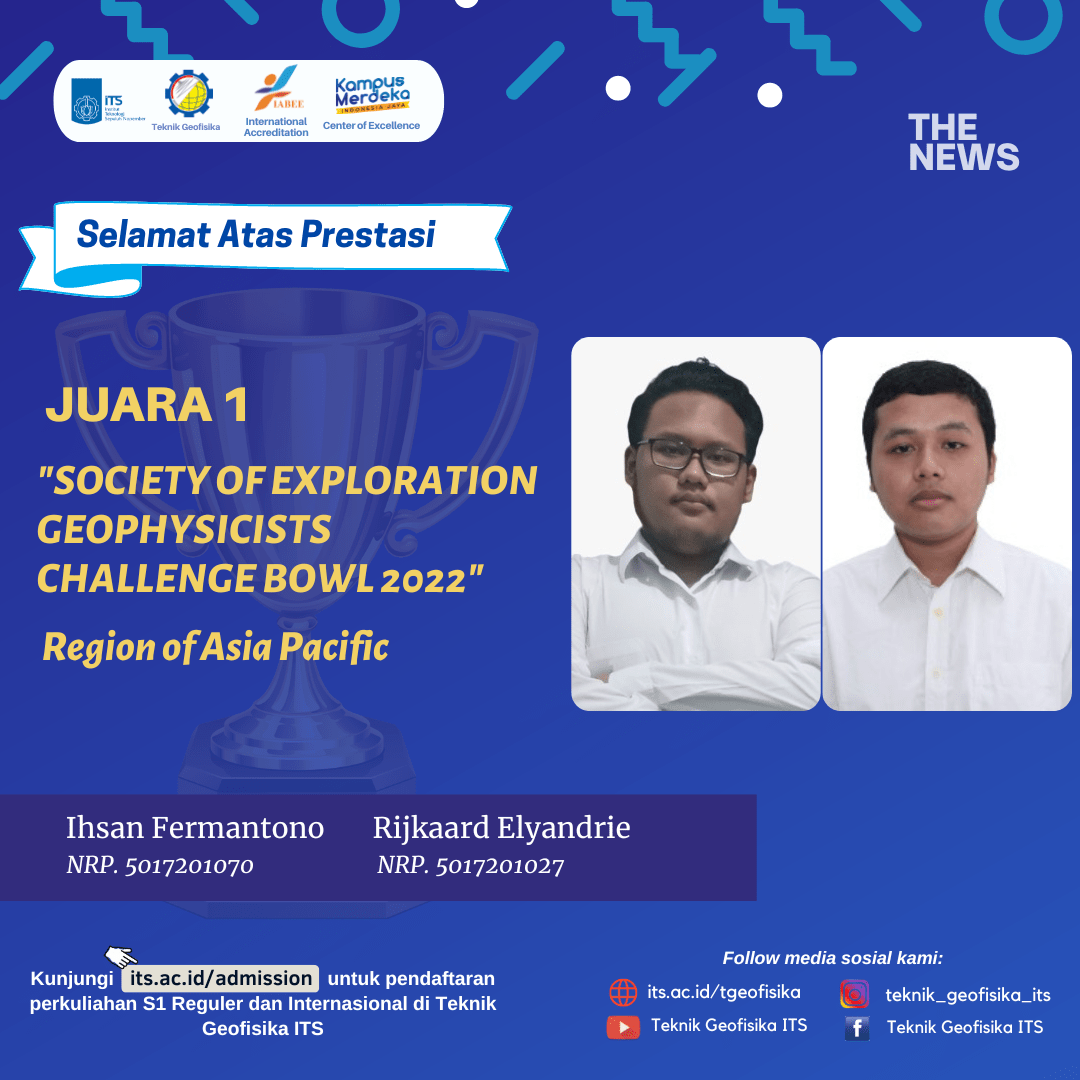 2 Mahasiswa Teknik Geofisika ITS menjadi jawara dalam kompetisi mahasiswa se Asia Asifik. Ihsan