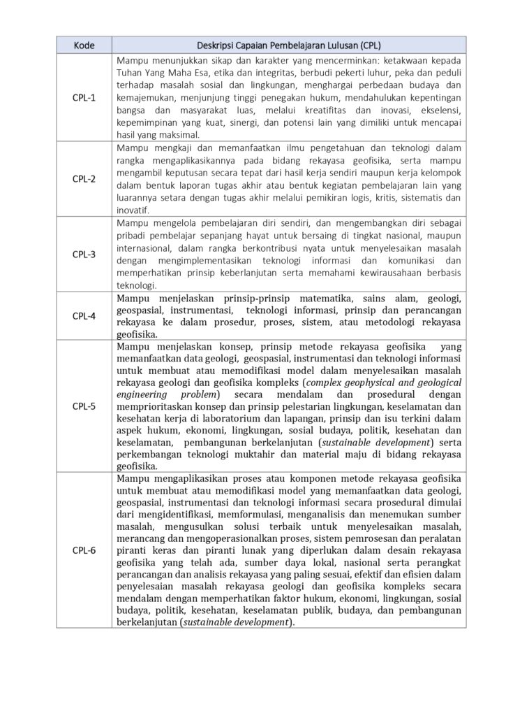 3. Individu yang mampu melaksanakan dan mengembangkan entrepreneurship dalam trans-disiplin atau trans-profesi dengan mempertimbangkan ilmu pengetahuan dan teknologi kebumian.