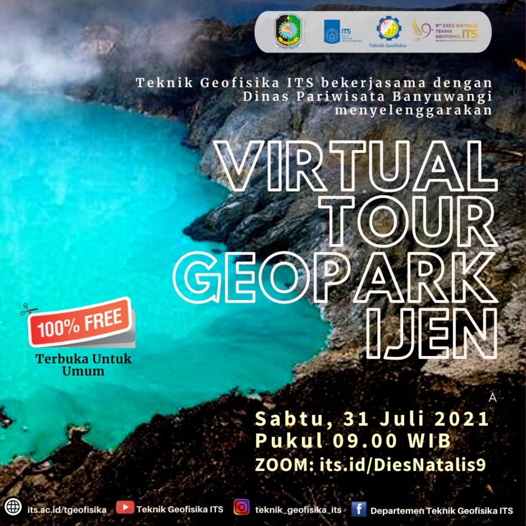 Jangan sampai lewatkan, acara Virtual Trip Geopark Ijen ini akan diselenggarakan pada Sabtu, 31 Juli 2021, pukul 09.00 WIB. Anda bisa bergabung dalam Zoom: its.id/DiesNatalis9 maupun Live Youtube : Teknik Geofisika ITS.
