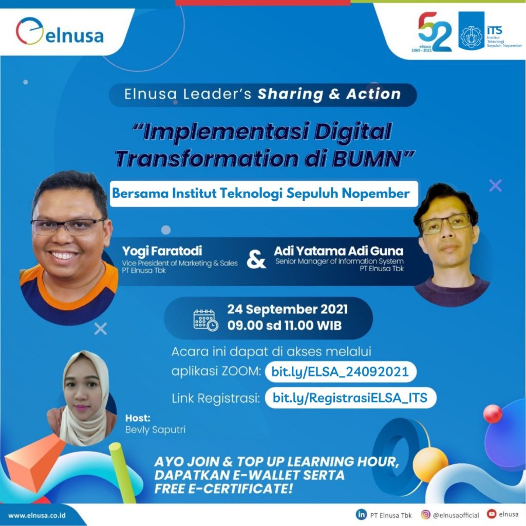 Teknik Geofisika ITS bekerjasama dengan PT Elnusa Tbk mempersembahkan Webinar “Implementasi Digital Transformation di BUMN”, dengan narasumber: