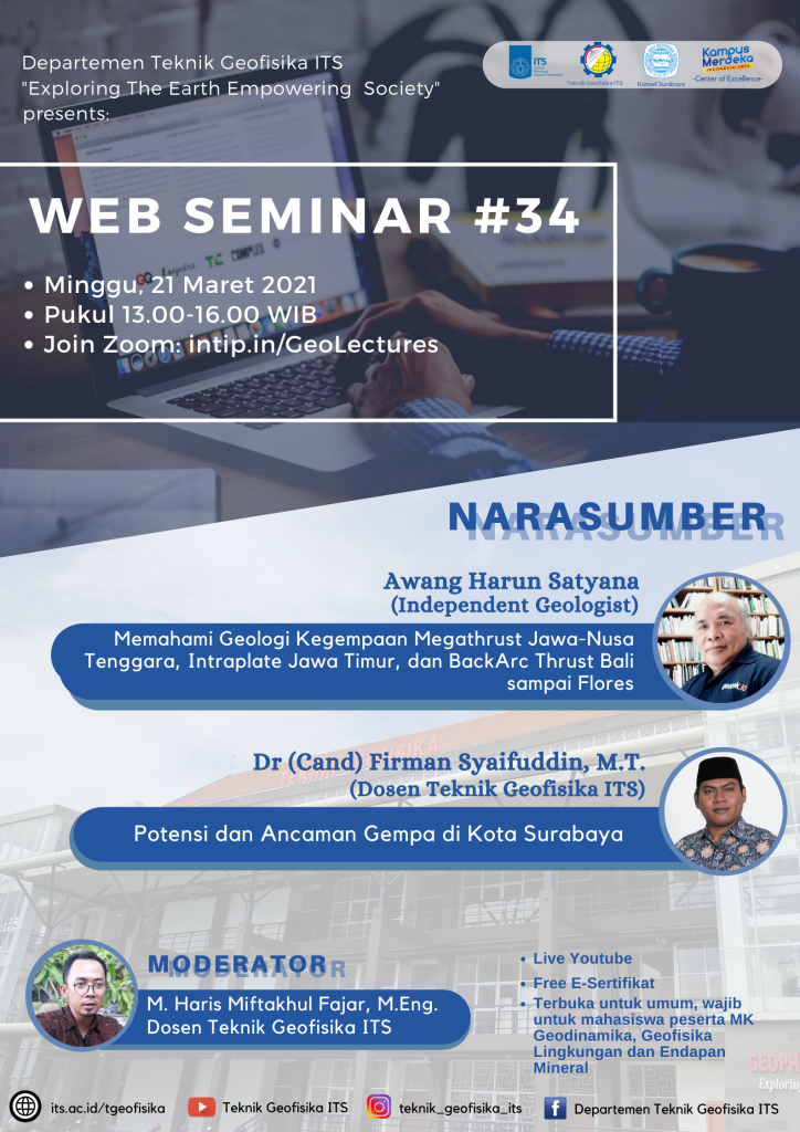 Webinar bersifat terbuka untuk umum, dan wajib untuk mahasiswa Teknik Geofisika ITS peserta MK Endapan Mineral