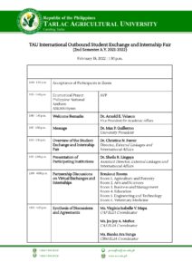 Tarlac Agricultural University Philliphines Outbound aStudent Exchange and Internship Fair_Program Flow_