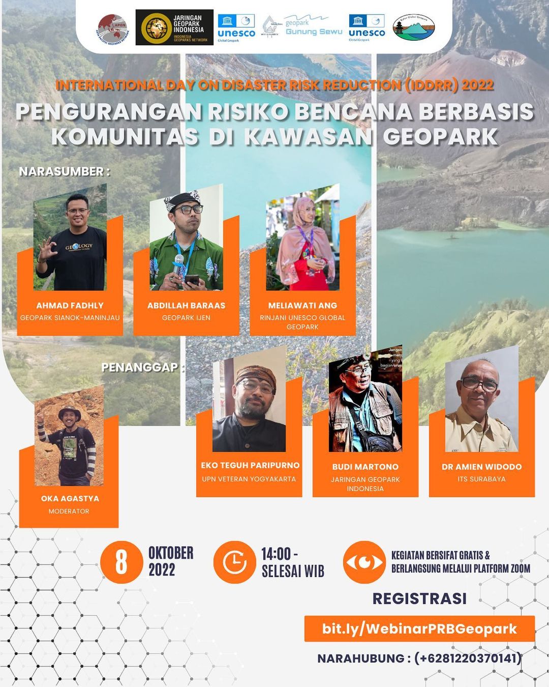 Acara ini bersifat gratis, segera daftarkan diri anda melalui Link Pendaftaran : bit.ly/WebinarPRBGeopark