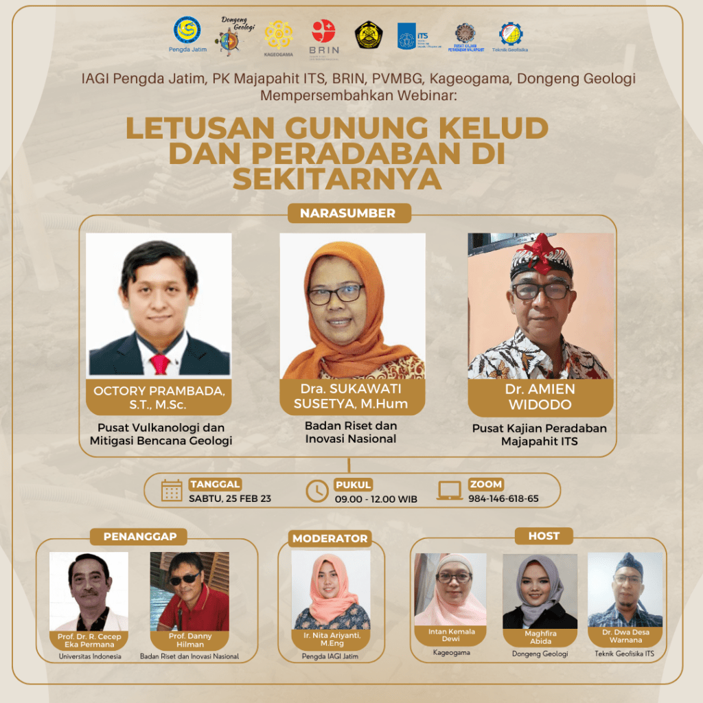 We, the ITS Majapahit Civilization Study Center, Geological Tales, Kageograma and IAGI Pengda East Java will be holding a Webinar “The Eruption of Mount Kelud and the Surrounding Civilizations” to provide additional insight to the community and stakeholders so they understand how powerful volcanic activity was in the past and can repeated in the future.