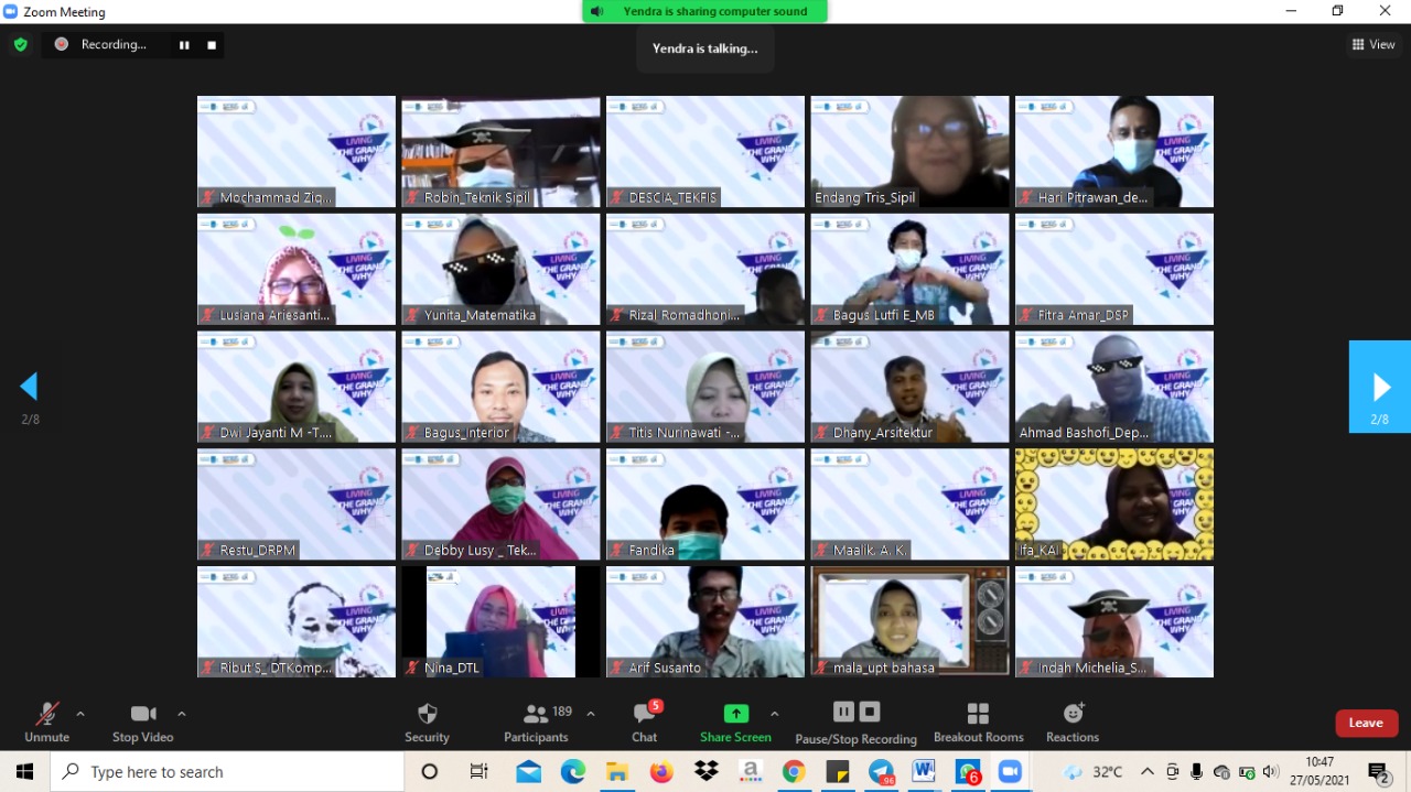 Untuk menghadapi tantangan di era VUCA (Volatility, Uncertainty, Complexity, dan Ambiguity) yang terjadi saat ini, sebagai Tenaga Kependidikan departemen Teknik Geomatika ITS dengan mengikuti pelatihan ini diharapkan dapat memiliki semangat pantang menyerah (unstoppable mentality), energi positif yang tidak terbatas (on fire), serta alasan terbesar dibalik impian yang ingin dicapai (Grand Why). Untuk itu diperlukan pemahaman mengenai cara menanamkan mindset positif dalam diri serta cara menemukan Grand Why dalam setiap aspek kehidupan