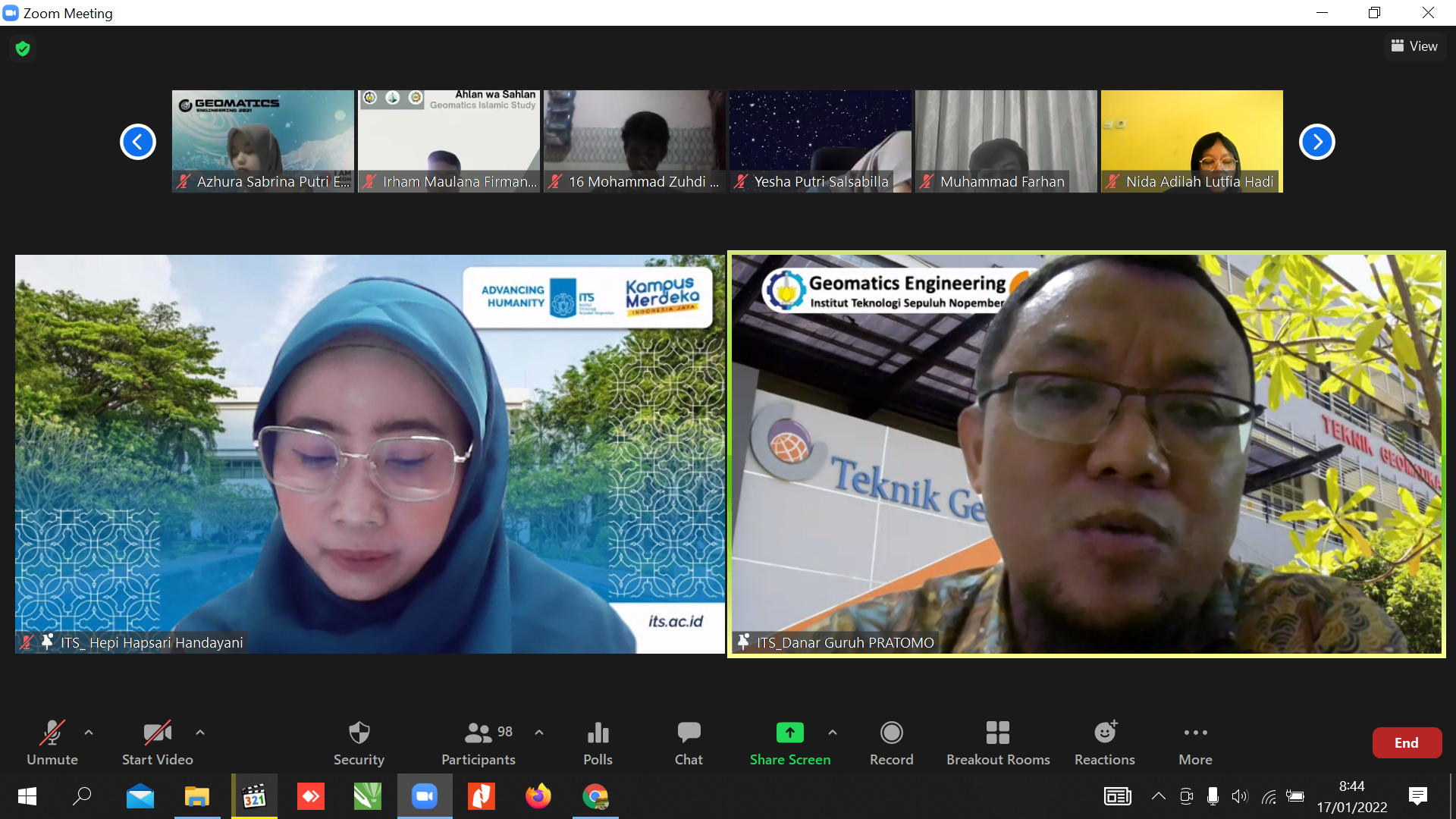 Sekretaris departemen I Hepi Hapsari Handayani, ST, M.Sc, PhD dan dihadiri oleh semua mahasiswa Departemen teknik Geomatika angkatan 2021