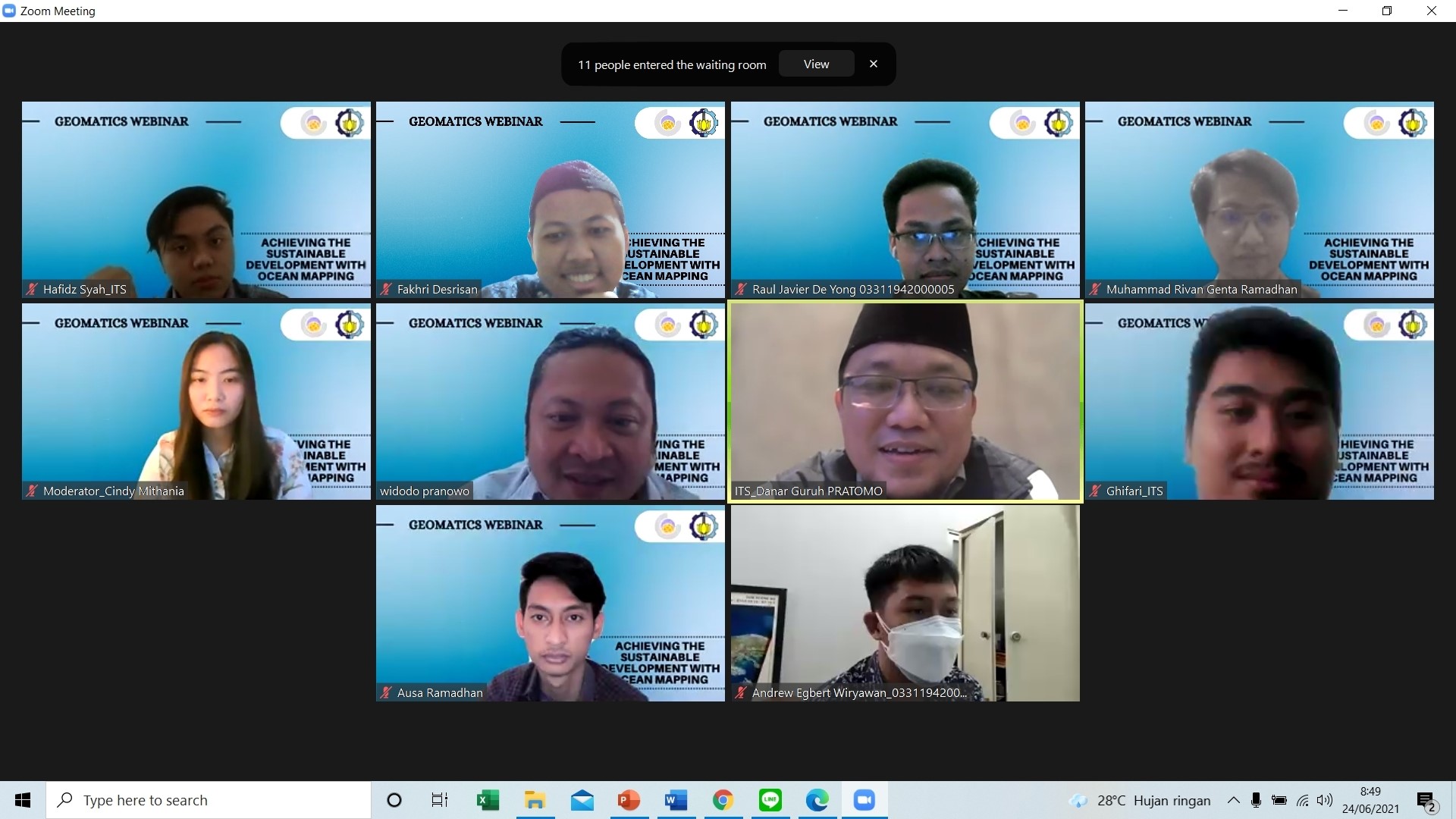 Dalam rangka Dies Natalis ke 23, Departemen Teknik Geomatika mengadakan Kuliah Tamu Seri berikutnya yang berjudul “Geomatics Guest Lecture Series: Achieving the Sustainable Development Goals of Life Below Water with Ocean Mapping”. Dalam kuliah tamu seri kali ini, materi dibawakan oleh Bapak Dr.-Ing. Widodo Setiyo Pranowo, S.T., M.Si., peneliti bidang Oseanografi Terapan pada Pusat Riset Kelautan, Badan Riset dan SDM, Kementerian Kelautan dan Perikanan Republik Indonesia, yang juga pengajar di Prodi Hidrografi/Hidro-Oseanografi Sekolah Tinggi Teknologi Angkatan Laut (STTAL). Pada kegiatan yang telah dilaksanakan pada Kamis, 24 Juni 2021 pada 24 Juni 2021 pukul 09.00 – 10.45 WIB, beliau memberikan kuliah umum yang berdurasi selama 45 menit dengan judul “Pemodelan Lintasan Sampah mikroplastik di Laut Indonesia”. Kegiatan tersebut telah dihadiri kurang lebih 245 orang baik melalui platform Zoom Meeting maupun Live Streaming di channel Youtube Teknik Geomatika.
