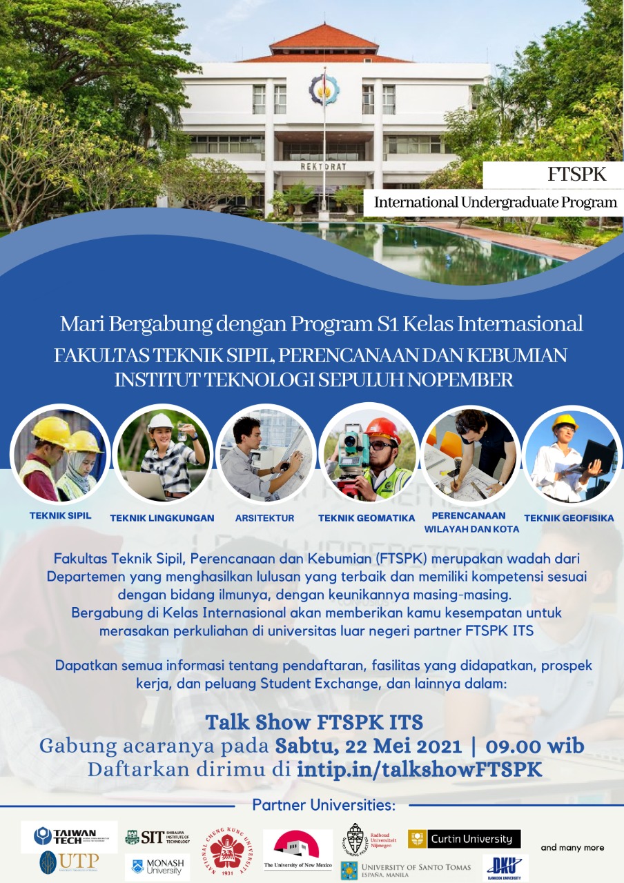 Nah dapatkan info detailnya tentang penerimaan program S1 Kelas Internasional ini di acara Talkshow FTSPK ITS.