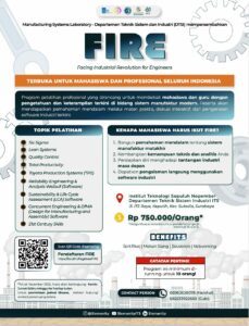 Program FIRE (Facing Industrial Revolution for Engineers) resmi dilaksanakan sebagai kegiatan pengembangan kompetensi yang bertujuan untuk membekali peserta dengan pengetahuan dan keterampilan terkini di bidang sistem manufaktur modern. Pelatihan ini dirancang secara komprehensif untuk menjawab kebutuhan industri terhadap tenaga profesional yang mampu beradaptasi dengan kemajuan teknologi, efisiensi proses produksi, serta penerapan prinsip manajemen mutu yang berkelanjutan.