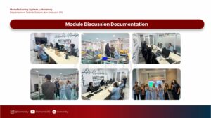 Pelaksanaan kunjungan industri berlangsung pada Senin, 9 Desember 2025, pukul 10.00 hingga 12.00 WIB, dengan agenda utama diskusi dan peninjauan aktivitas di Laboratorium Manufacturing Systems. Dalam kesempatan tersebut, perwakilan PT Riken Pakarti berdiskusi secara langsung mengenai pelaksanaan praktikum simulasi Toyota Production System (TPS) serta berbagai aktivitas pembelajaran dan penelitian lainnya yang dilakukan di laboratorium. Kegiatan ini memberikan gambaran nyata mengenai penerapan konsep sistem manufaktur dalam lingkungan akademik.