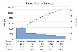 Contoh: Sebuah pabrik garmen menemukan 10 jenis kerusakan pada baju. Setelah dibuat Pareto, ternyata 80% kerusakan hanya disebabkan oleh dua hal: “jahitan lepas” dan “kancing copot”. Maka, pabrik cukup memperbaiki dua hal ini untuk menyelesaikan sebagian besar masalah kualitas.