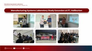 Pelaksanaan studi banding berlangsung pada Senin, 2 Juni 2025, dengan tujuan kunjungan ke PT Haliburton. Dalam kegiatan ini, anggota Laboratorium Manufacturing Systems yang terdiri dari dosen dan asisten laboratorium mempelajari berbagai aspek strategis perusahaan. Beberapa hal yang menjadi fokus pembelajaran meliputi core business process PT Haliburton, ragam servis yang disediakan perusahaan, komitmen terhadap produksi berkelanjutan, serta pemahaman mengenai core value yang menjadi landasan budaya kerja perusahaan.
