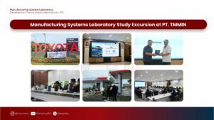 Pelaksanaan studi banding berlangsung pada Rabu, 29 Oktober 2025, dengan tujuan kunjungan ke PT Toyota Motor Manufacturing Indonesia (TMMIN). Dalam kegiatan ini, anggota Laboratorium Manufacturing Systems yang terdiri dari dosen dan asisten laboratorium memperoleh berbagai wawasan strategis terkait pengelolaan sistem manufaktur. Beberapa hal yang dipelajari meliputi teknologi kunci yang digunakan oleh PT TMMIN, digitalisasi operasional dan rantai pasok, serta strategi peningkatan produktivitas melalui pemanfaatan teknologi digital.