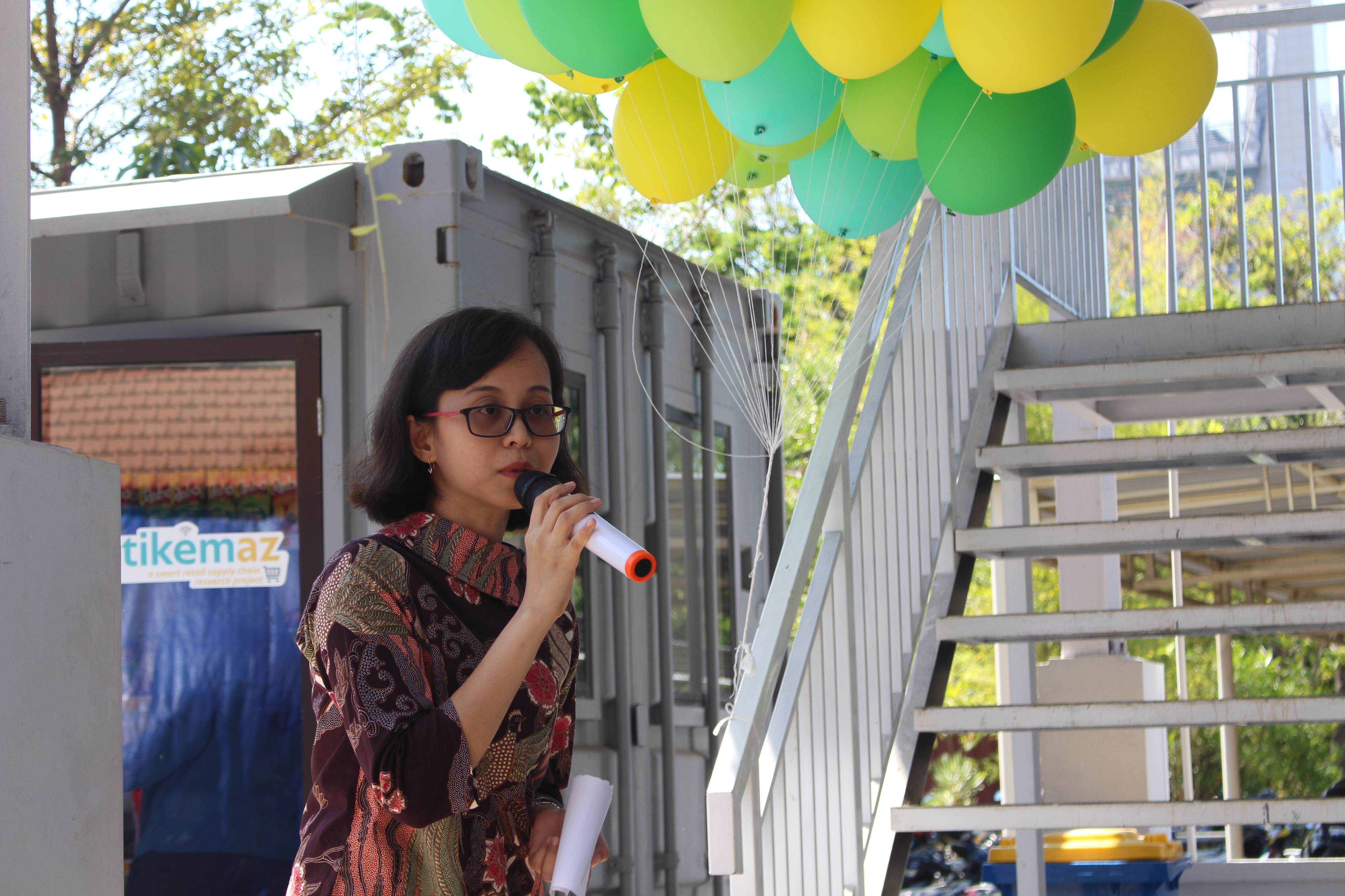 Kepala Laboratorium LSCM, Dr Niniet Indah Arvitrida ST MT, saat memberikan sambutan dalam peluncuran Proyek Petikemaz di Departemen Teknik Industri ITS, Kamis (29/8).