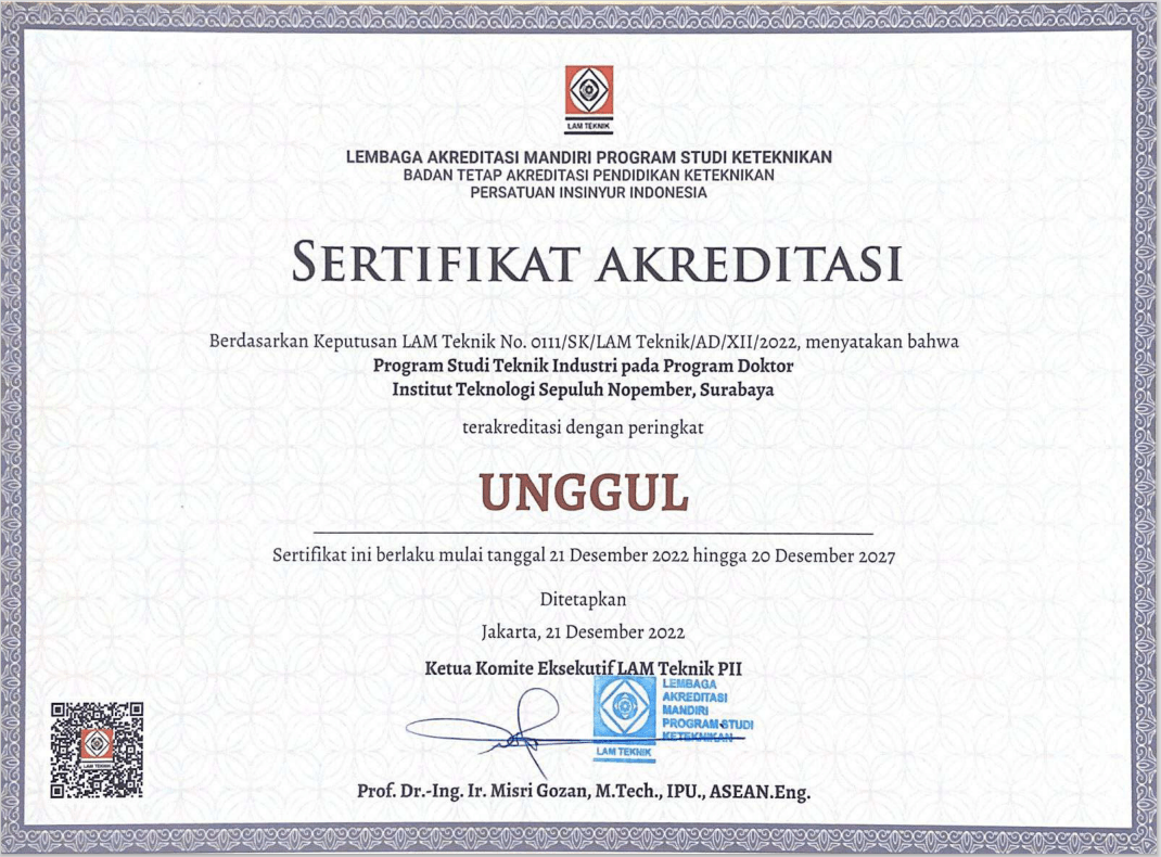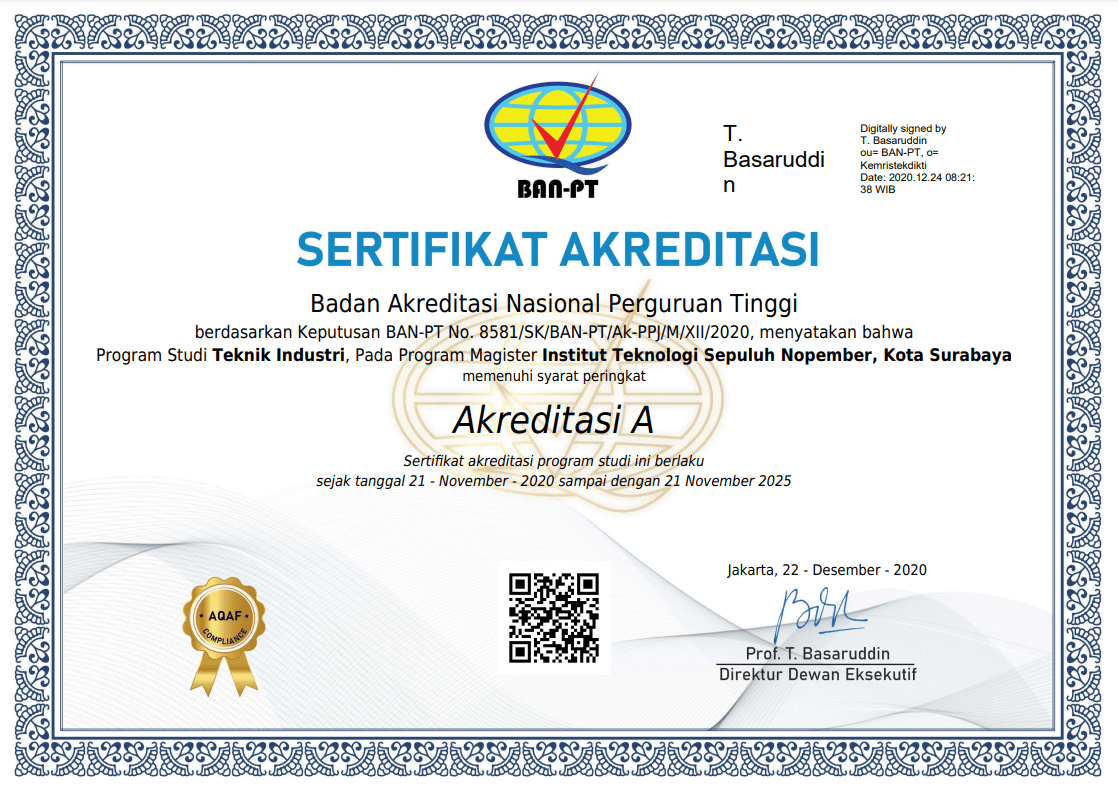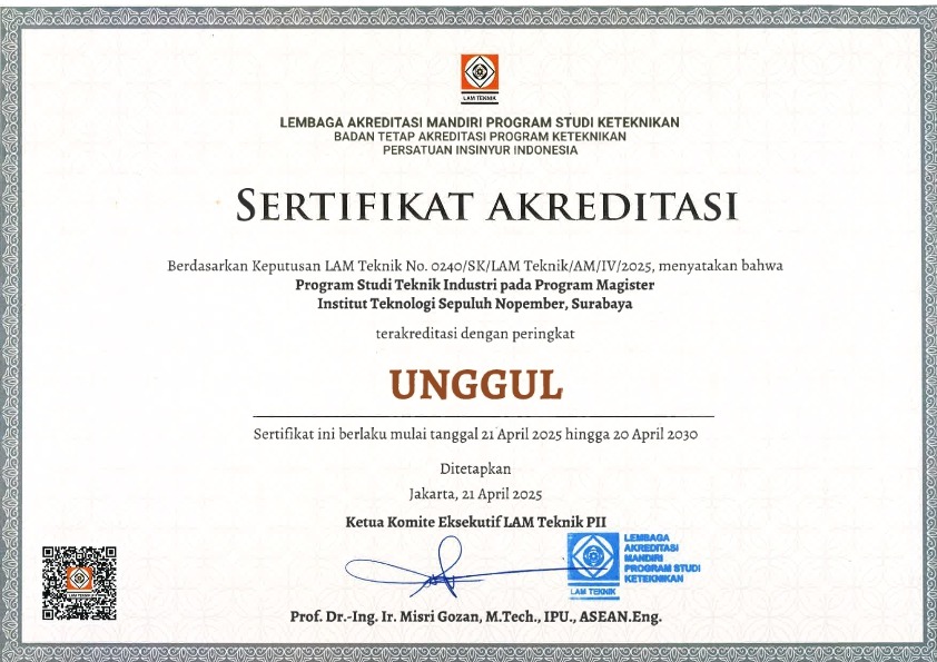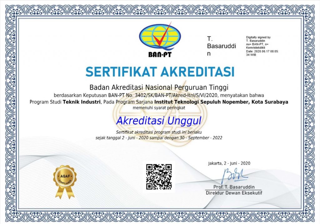 Departemen Teknik Sistem dan Industri (DTSI) berkomitmen untuk menjaga standar pendidikan tinggi yang unggul melalui proses akreditasi yang ketat dan berkelanjutan. Akreditasi menjadi bukti bahwa program studi di DTSI telah memenuhi kriteria mutu yang ditetapkan oleh lembaga penjamin mutu nasional maupun internasional. Dengan pencapaian ini, DTSI terus berupaya memberikan pendidikan, penelitian, dan pengabdian kepada masyarakat yang relevan dan berkualitas tinggi untuk menghasilkan lulusan yang kompeten dan siap bersaing secara global.