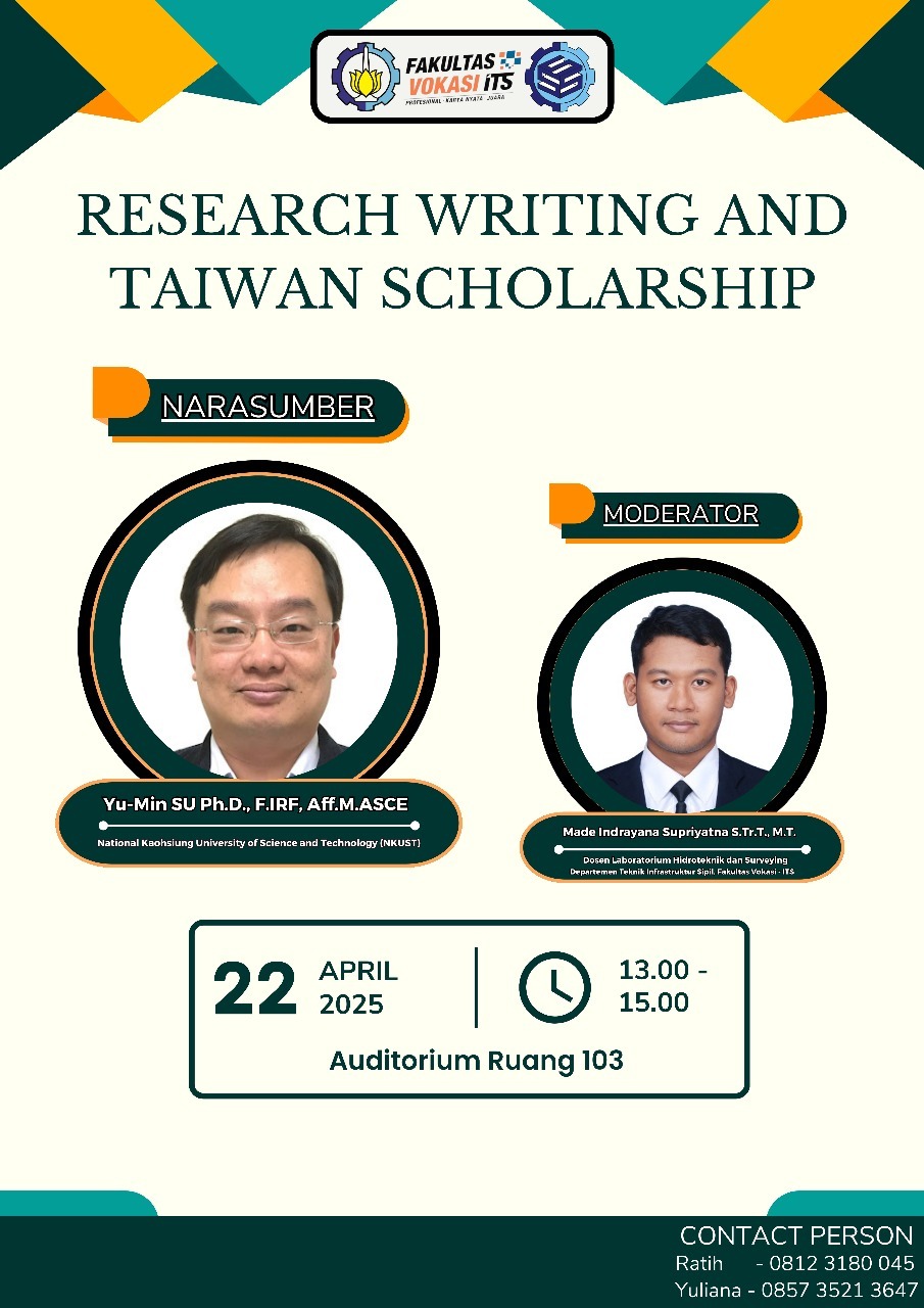 Halo, Sobat Vokasi! Punya mimpi melanjutkan studi ke luar negeri, khususnya di Taiwan? Atau ingin mengasah kemampuan menulis karya ilmiah yang berkualitas internasional? Yuk, ikuti seminar “Research Writing and Taiwan Scholarship” yang akan membuka wawasanmu lebih luas lagi! ✍️📚