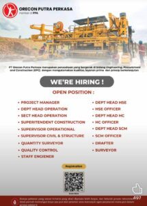 PT Orecon Putra Perkasa buka peluang karier bagi profesional EPC untuk bergabung dan berkontribusi dalam pembangunan berkelanjutan.