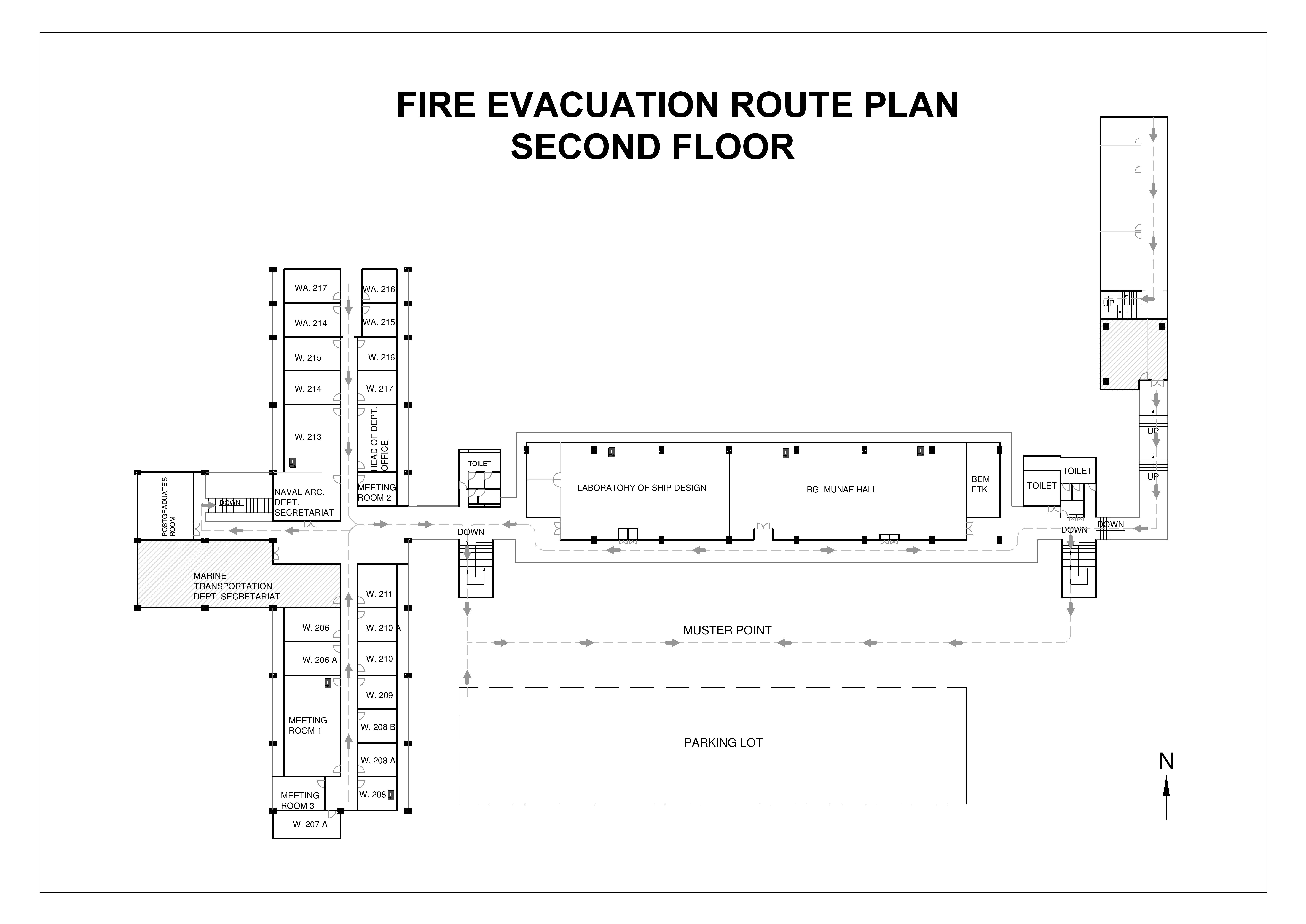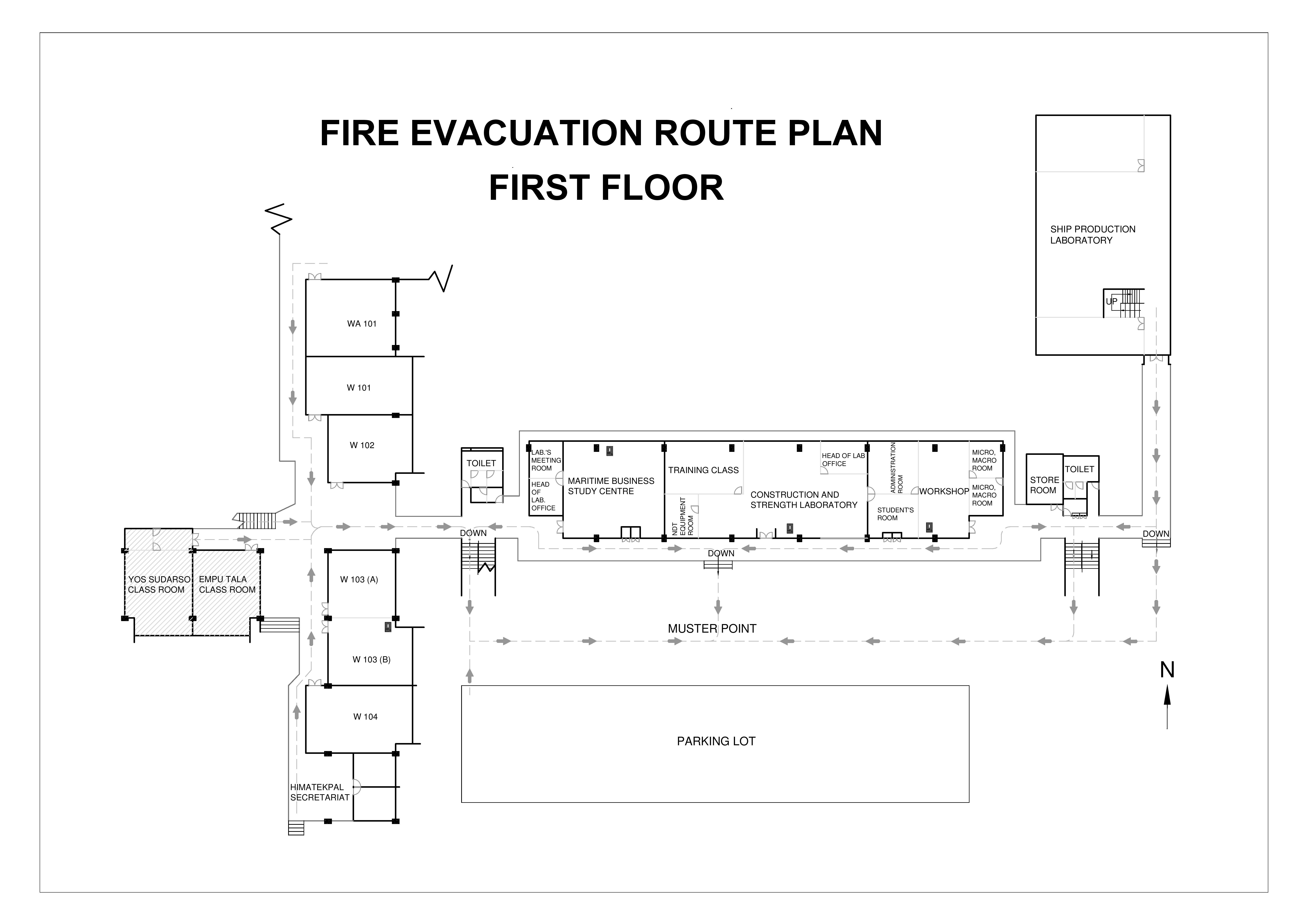 Gedung Departemen Teknik Perkapalan terdiri dari 4 lantai dengan fasilitas setiap lantainya sebagai berikut: