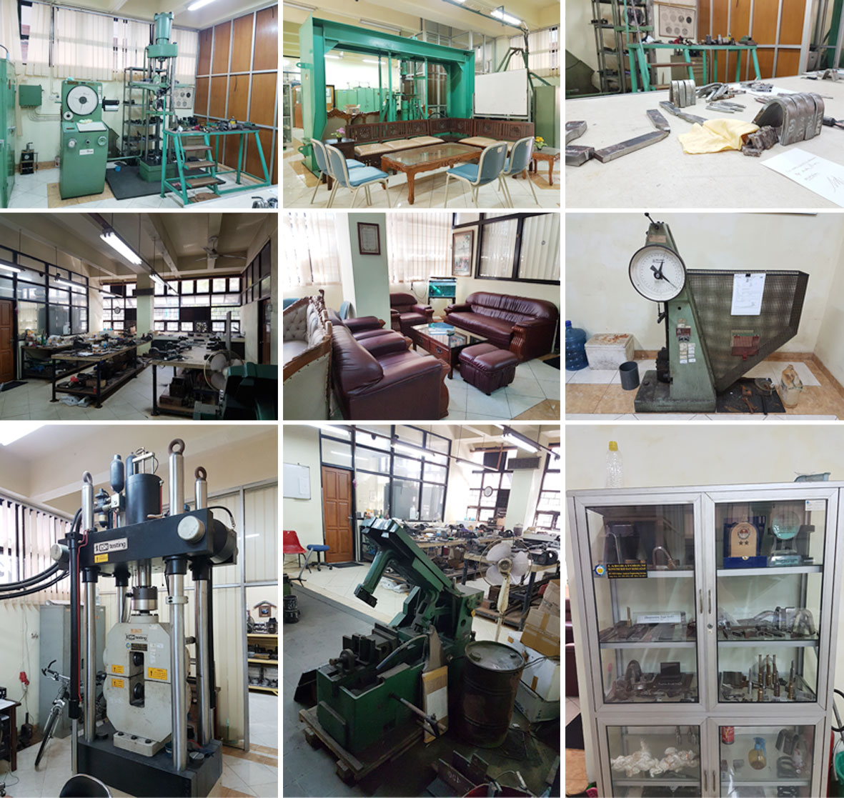 Laboratorium ini memegang peranan penting dalam penelitian konstruksi dan kekuatan kapal, terutama pengujian material yang akan digunakan dalam pembangunan kapal. Secara detil penelitian dan pengujian tersebut meliputi persoalan teknik pengelasan dan pemeriksaan hasil pengelasan (DT dan NDT), getaran kapal, kelelahan material dan material maju/khusus. Untuk mendukung kegiatan tersebut, laboratorium ini dilengkapi antara lain dengan peralatan uji tarik-tekan, dan software untuk analisis struktur (NASTRAN).