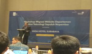 DTK NEWS – Tanggal 31 juli – 1 Agustus 2018, Sekretaris Institut bekerjasama dengan tim website dari Direktorat Pengembangan Teknologi dan Sistem Informasi (DPTSI), selama 2 hari mengadakan kegiatan bertajuk Workshop Migrasi Website Departemen. Acara ini diselenggarakan di Vasa Hotel, Surabaya. Pelatihan ini diikuti oleh perwakilan admin IT website dari tiap Departemen di lingkungan ITS yang terdiri dari dosen dan tendik. Tujuan pelatihan ini adalah untuk memindahkan serta melengkapi web yang sudah ada di tiap Departemen dan Unit-unit di ITS ke dalam template web standar yang baru yang telah disediakan pihak ITS dengan tetap mengakomodasi aspek kekhasan tiap unit. Hari pertama, acara di buka oleh Rektor ITS, Prof Ir. Joni Hermana M.Sc.ES., Ph.D. Dalam sambutannya rektor ITS menyampaikan tujuan diadakannya pelatihan. ”Terkait dengan perubahan jaman industri 4.0. ITS dituntut untuk mampu mengelola website secara baik dengan konten informasi yang aktual”, Ujarnya.