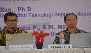 Atas undangan ketua LPPM-UTM Ir. Muhammad Fakhry, M.P., dosen DTK Suntoyo, ST, M.Eng., Ph.D menjadi salah seorang pemateri pada sebuah acara bertajuk Workshop Penulisan Jurnal Internasional dan Launching “KAJI” (Klinik Artikel Jurnal Internasional) yang diselenggarakan oleh LPPM-UTM. Workshop sehari ini berlangsung di Gedung Graha Utama Lt.10 yang bertepatan dengan Hardiknas pada Rabu 2 Mei 2018. Pemateri kedua adalah Dr. Sc. Asep Awaludin P., S.Pi, MP. dosen Prodi Teknologi Hasil Pertanian Universitas Brawijaya Malang. Menurut Suntoyo, hasil capaian riset yang baik haruslah menghasilkan originality, novelties (keterbaruan dan keterkinian) dan uniqueness yang memadai sehingga bisa dipublikasikan di jurnal internasional yang bereputasi Q1 atau Q2 .