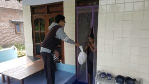 JOMBANGDTK ITS:  Mahasiswa Departemen Teknik Kelautan, Fakultas Teknologi Kelautan, Institut Teknologi Sepuluh Nopember Surabaya (ITS) yang berasal dari Jombang, Alfian Solih Wicaksono, menggelar aksi sosial yang dikemas dalam KKN Tematik Relawan Desa ITS Melawan Covid-19 dengan membagikan sembako bagi warga dan menyemprotkan disinfektan di Jombang, Minggu (19/04/2020) hingga Sabtu (02/05/2020).