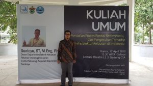 Atas undangan Kadep Teknik Kelautan UNHAS, dosen Teknik Kelautan ITS Suntoyo, ST., M.Eng., Ph.D berkesempatan memberikan Kuliah Umum di hadapan civitas akademika Teknik Kelautan – Fakultas Teknik – UNHAS, Makassar. Acara yang berlangsung Kamis, 12 April 2018 itu memaparkan salah satu topik dalam bidang Teknik Pantai yang sangat implementatif di lapangan yaitu “Persoalan Proses Pantai, Sedimentasi dan Pengerukan terhadap Infrastruktur Kelautan di Indonesia”. Kuliah umum yang diselenggarakan di Lecture Theatre ini dihadiri tidak kurang dari 150 orang baik mahasiswa maupun dosen Departemen Teknik Kelautan UNHAS. Setelah paparan, acara dilanjutkan dengan sesi tanya-jawab/diskusi yang berjalan dengan semarak dan disambut dengan antusias oleh para peserta. “Banyak persoalan aplikatif mengemuka dalam diskusi,” tutur lulusan Doktoral dari Univ. Tohoku Jepang ini.