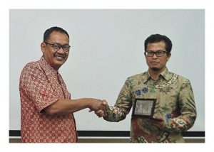 Acara diakhiri dengan pemberian cindera mata oleh dosen senior DTK-UNHAS, Ir. Juswan, MT yang gelar Magisternya ditempuh di Program Studi Pascasarjana Teknologi Kelautan-FTK-ITS ini, kepada pemateri Suntoyo, Ph.D. [@erwepe_DTK-ITS_2018].