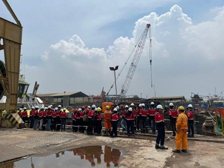 DTK NEWS – Mahasiswa Teknik Lepas Pantai Institut Teknologi Sepuluh Nopember (ITS) angkatan 2022 dan 2023 melaksanakan kegiatan company visit industri ke PT Dumas Tanjung Perak Shipyard dan PT PAL Indonesia (Persero) pada 19 November 2025. Kegiatan ini diikuti oleh 57 mahasiswa dengan pendampingan Bapak Murdjito, M.Sc., Eng., sebagai bagian dari upaya memperkuat pemahaman mahasiswa terhadap praktik industri galangan kapal dan struktur lepas pantai.