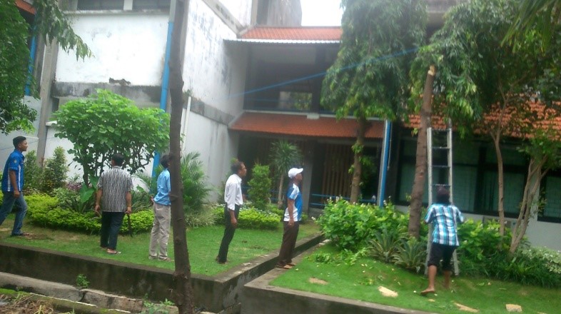 Pembersihan dan perawatan taman di sekitar area DTK.