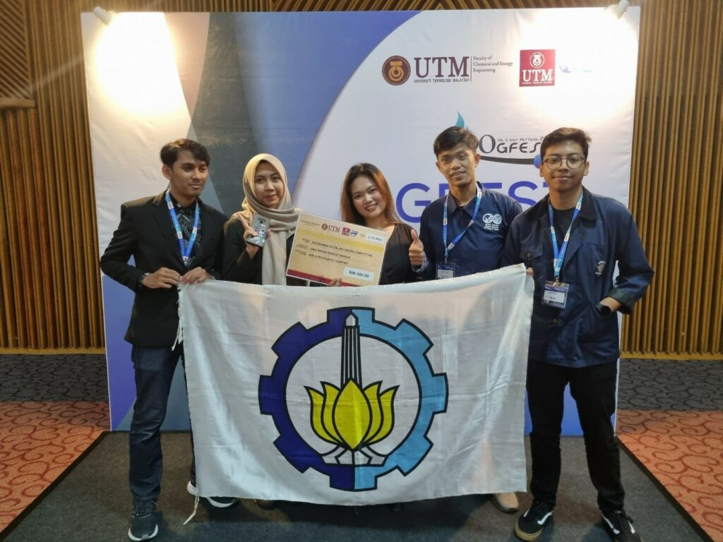 DTK NEWS – Johor Bahru, 19 Maret 2023. Team Chatoyant yang beanggotakan (dari kiri ke kanan) Mohammad Rohman Nabil, Advira Nafi Khalida, Angelyca David Vinci, Muhammad Desar Eka Syaputra, Flavio Klorus Daniel Sambhala merupakan mahasiswa Teknik Kelautan Angkatan 2021 yang berhasil mendapatkan 2nd Runner-Up of Oil Rig Design Competition dalam event Oil and Gas Festival 2022 (Ogfest ’22) yang diselenggarakan oleh The Society of Petroleum Engineers of Universiti Teknologi Malaysia (SPE-UTM) Student Chapter (SC) bekerja sama dengan beberapa perusahaan minyak dan gas.